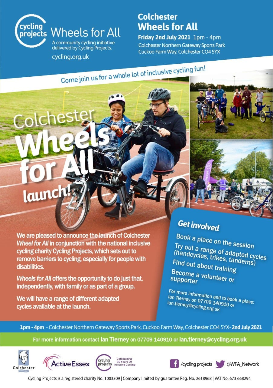 We are launching the Colchester Wheels for All programme with a try out session between 1pm and 4pm on Friday 2nd July.