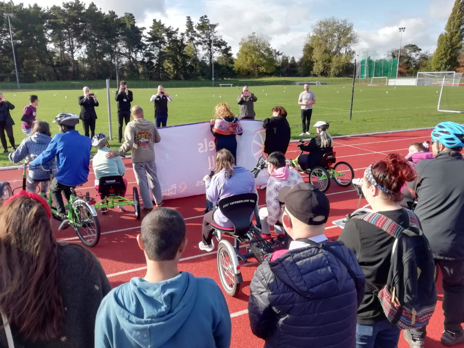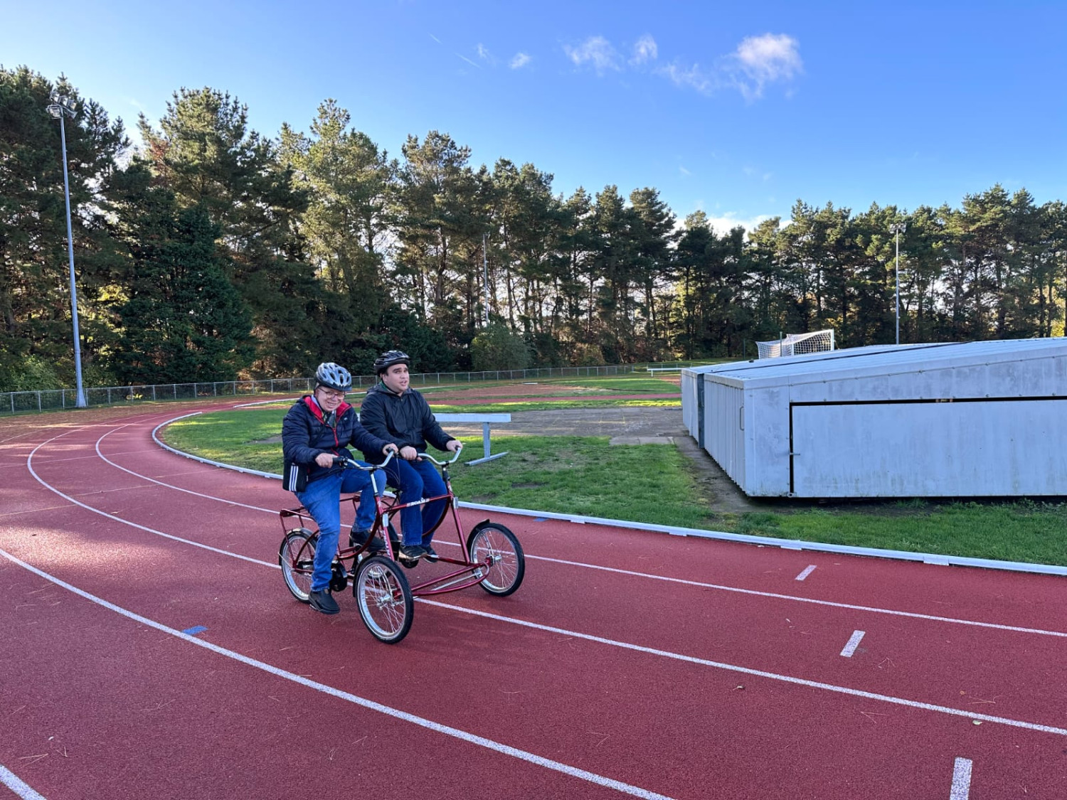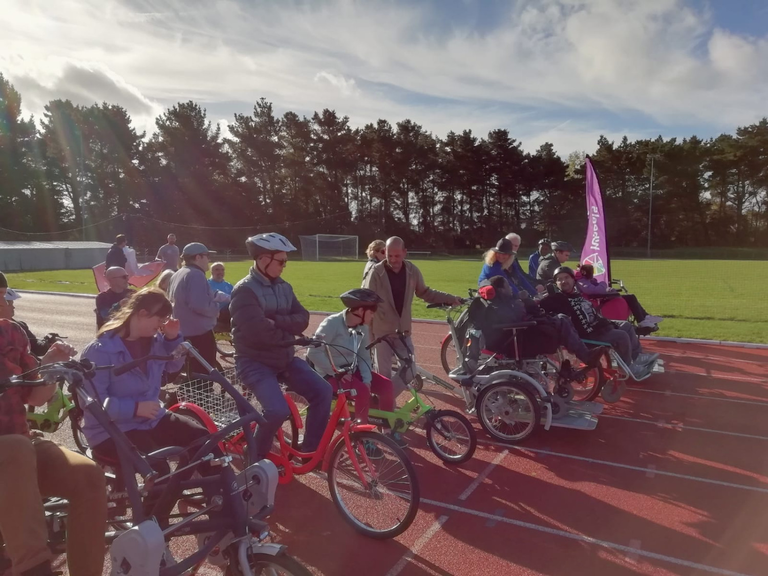 A: 2 people came along who are partially-sighted, and a volunteer was able to take them out on a side-by-side: that way the partially-sighted rider is able to sit on a cycle saddle and ride with 4 wheels – get that feeling of being back on a conventional saddle.