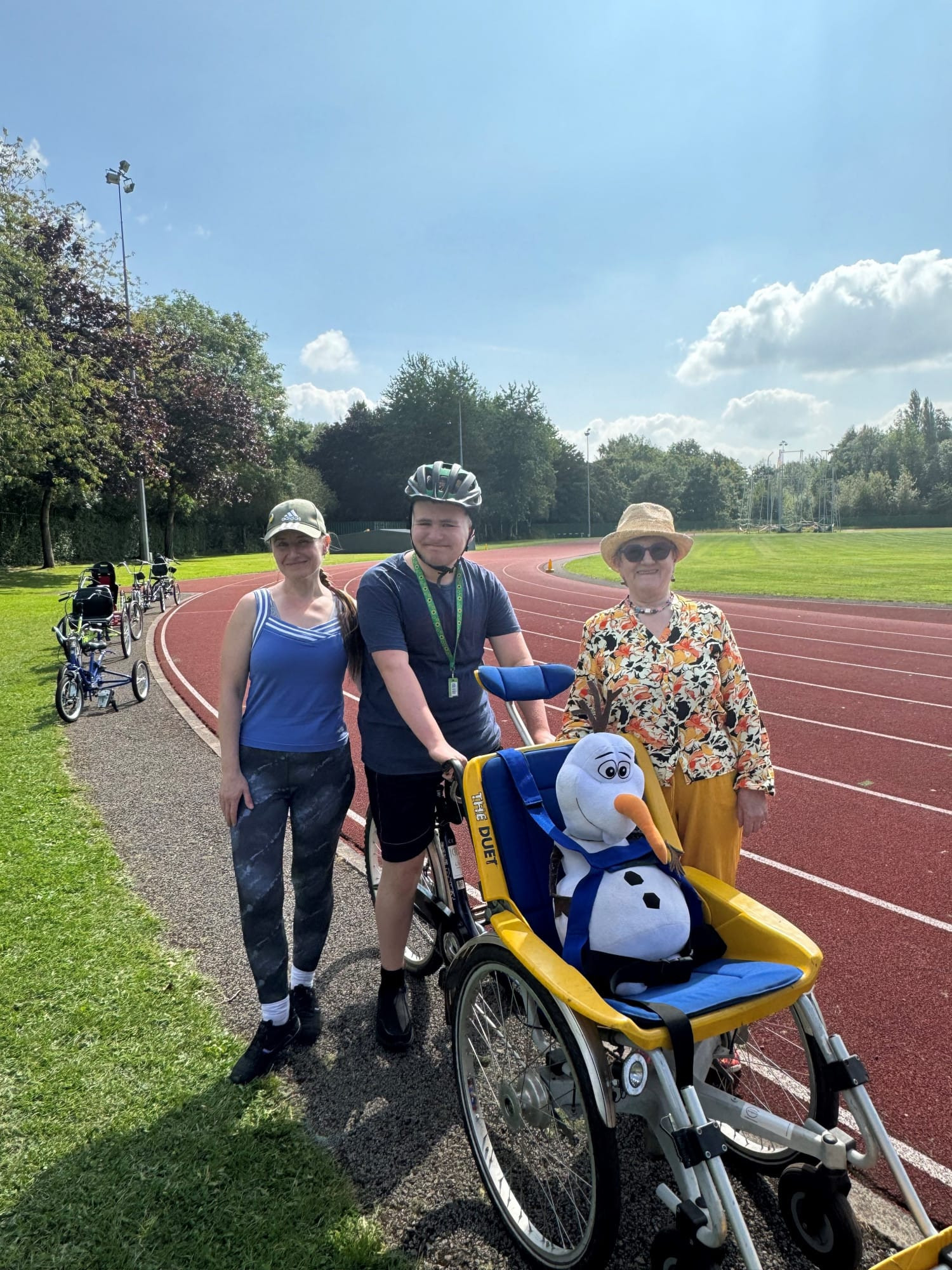 At Wheels for All, we celebrate every cyclist’s unique journey, and Adam’s story is one of dedication, growth, and community. Adam, 15, attends the Salford sessions regularly, accompanied by his mum, Sonia, and their long-time neighbour and friend, Janet. Having lived on the same street for several years, the trio shares a close bond, making their trips to the sessions a regular highlight of the week.