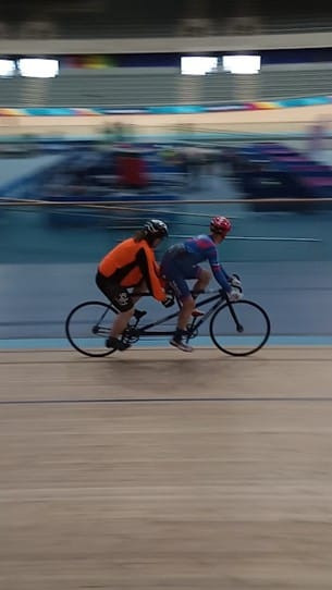 In February of ’23, Adi got his chance. British Cycling’s Limitless campaign was launched and they invited potential track cyclists to a free event. Wheels for All were contacted to see if we had any takers. Jo offered to take Adi there herself.