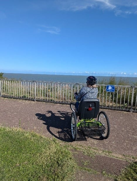 Since receiving her cycle, Karen has been out riding 16 times, covering distances of up to four miles along the coast. Not only has cycling helped her regain strength and independence, but it’s also given her the opportunity to enjoy her surroundings in a way she hadn’t been able to in years. While walking requires her to constantly focus on the ground, cycling allows her to take in the beauty of the seafront and even connect with others along the way.