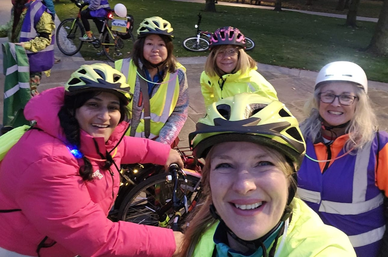 Last weekend, Wheels for All had the pleasure of joining the incredible Lights Up Ride in Manchester, an evening event dedicated to inspiring women to cycle through the winter months. Participants and team members from our Pedal Away Trafford program took part in this fantastic event, which started at Manchester Metropolitan University and finished at Victoria Baths for food, drinks, and celebration.