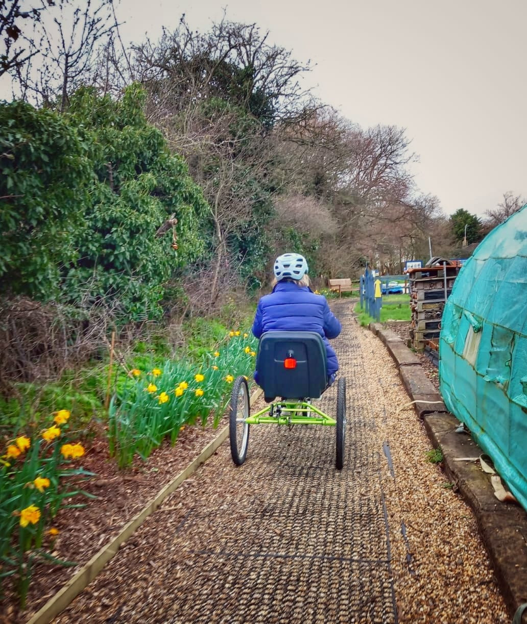 Sailship is a work and life skills training centre for people living with a learning disability. It is set amongst allotments, garden areas, and woodlands with a short, peaceful pathway that is used for walking or cycling using our adapted cycles. We have sessions running at Sailship on Thursday mornings.