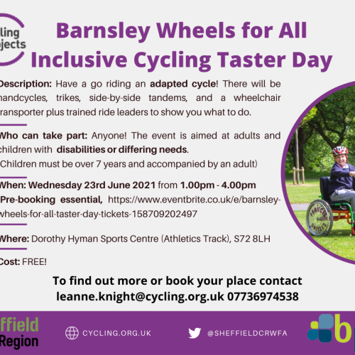 Free Inclusive Cycling Event in Barnsley - Wednesday 23rd June