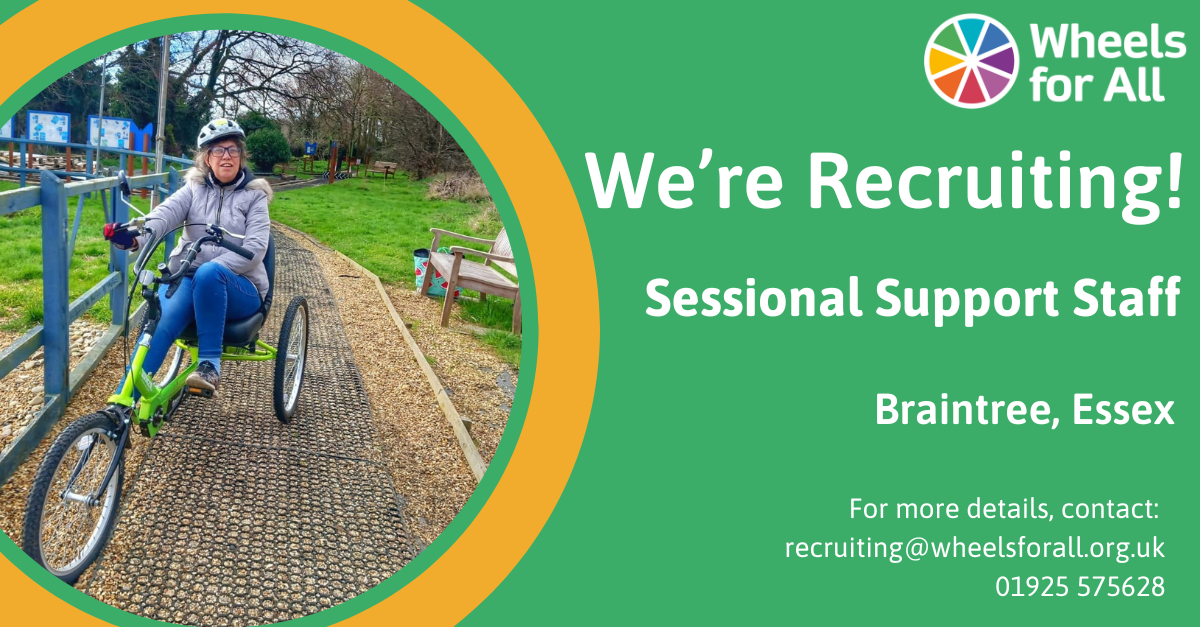 Wheels for All is looking for an enthusiastic and dedicated Sessional Support Worker to help deliver inclusive cycling sessions in Braintree, Essex!