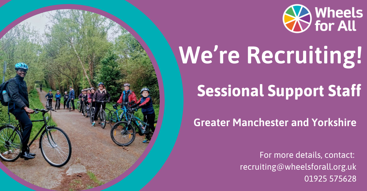Wheels for All is recruiting sessional members of staff to support our community cycling activities across Greater Manchester and Yorkshire. This is an opportunity to work with a well-established and respected charity to help improve people’s health and wellbeing.