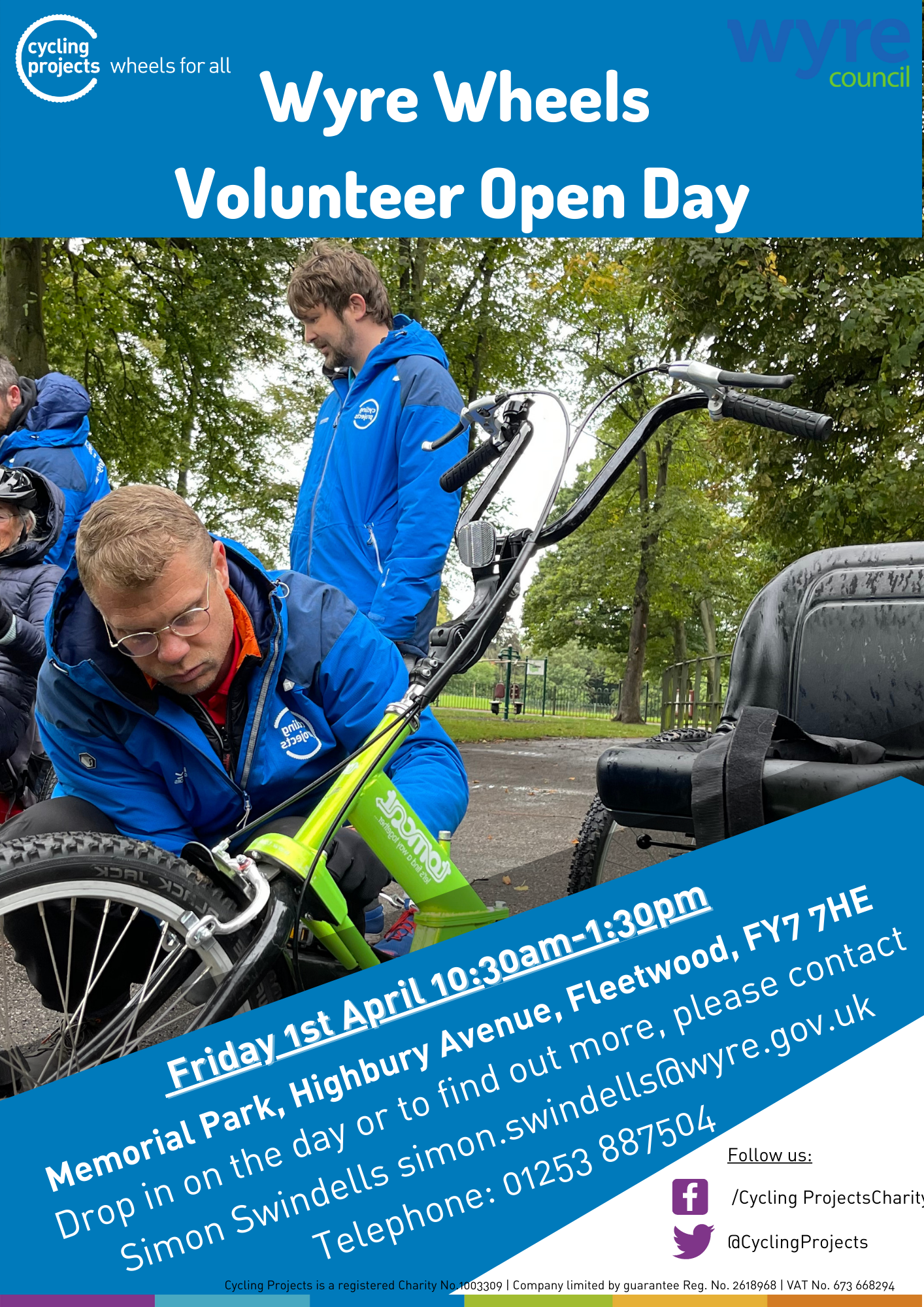 We’d love to see you at Wyre Wheels Volunteer Open Day on Friday 1st April 2022, where you can find out more about the volunteering opportunities that they have available.