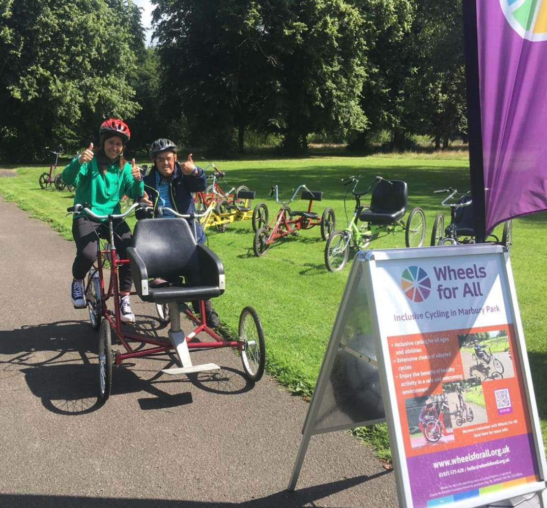 Here at Wheels for All Marbury Park we aim to encourage health improvement, social inclusion and to provide adapted cycling for anyone with a disability or differing needs. Wheels for All Marbury Country Park has a variety of adapted bikes, which you can try out in a fun and safe environment, situated close to the village of Comberbach several miles north of Northwich.