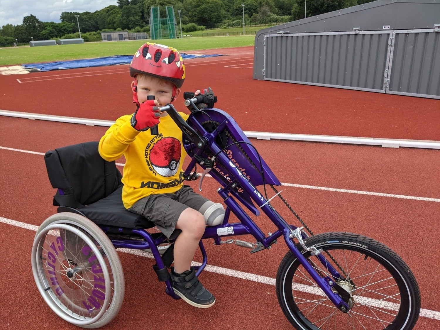 We tried a seated hand bike as an alternative and, after getting used to aching arms, he got on with it really well. The hand bike also means he doesn’t need to wear his prosthesis.